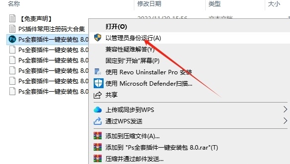 1、打开在本站下载的文件夹,点击【Ps全套插件一键安装包.exe】以管理员身份运行。