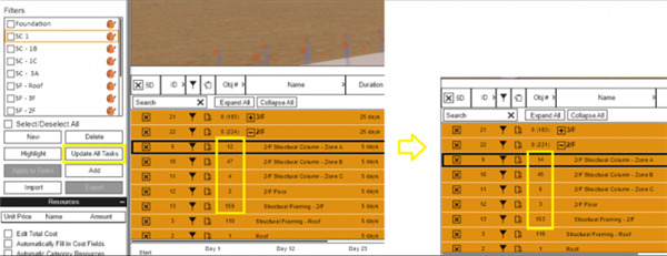 采用过滤器来筛选并添加4D施工任务中的构件时,可以通过一键更新功能,快速更新所有任务中的过滤器