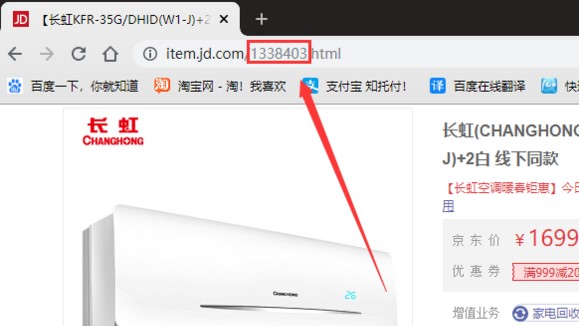 用任意浏览器在京东随便找一个商品,找到京东商品的ID,并输入到软件中。(如:https://item.jd.com/1338403.html,其中1338403为商品ID)