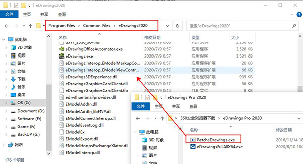 1、下载解压,解压后得到eDrawings 2020主程序及补丁;