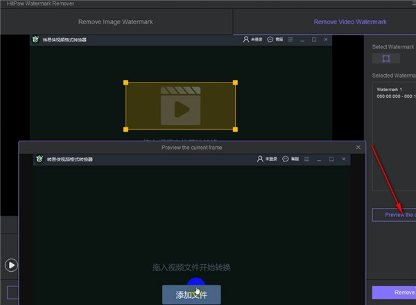 7、点击选择水印去除位置然后点击去除水印按钮即可进行水印去除
