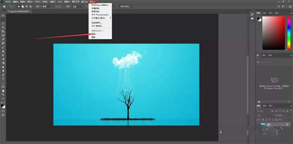 2、点击PS界面上方,帮助,选择 登录