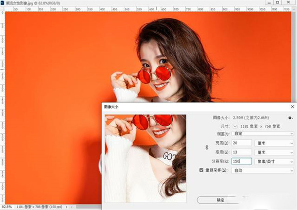 3、我们打开一张宽20cm,高13cm,分辨率150的图片