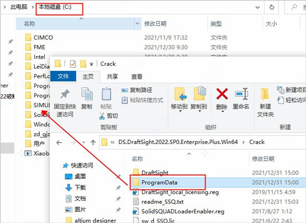 2、如果没有安装SSQ的SolidWorks 2019-2020,那么先复制ProgramData文件夹到C盘根目录下并进行替换;
