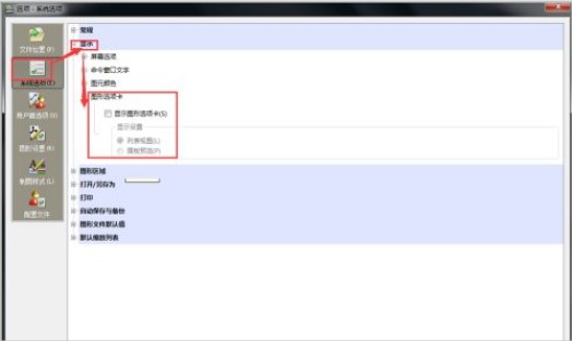 5、去掉图形选项卡标签,适用于习惯快捷键切换Ctrl+Tab,打开选项->系统选项->显示->图形选项卡->显示图形选项卡前勾去掉;