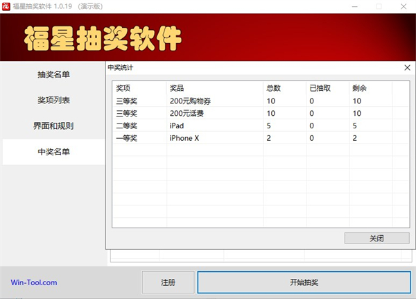 点击主窗口下方的“开始抽奖”按钮,可以开始抽奖。