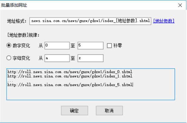 对于起始网址我们也可以批量添加或从txt文件导入,比如我们要采集前5页,也可以这样自定义五个起始页