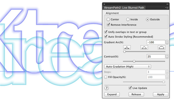 Xtream Path是一款适用于Windows系统的AI圆角插件,也是Adobe Illustrator的路径编辑插件。它可以帮助用户更方便的设计字体,使用Xtream Path可以实现很多对于路径的操作,当编辑路径时也不会受控制点的约束,允许把路径拖曳到任何地方,以及在你想要的位置编辑路径,使得在使用Illustrator时,编辑路径比以前灵活许多。与其它插件无异,只要解压至当前illustrator版本的安装目录Plug-ins文件夹内,然后重启illustrator即可。除此之外,Xtream Path还提供了动态壁纸、吹风效果、智能倒角、实时模糊路径、实时旋转镜像等功能,总而言之,只要有有了该插件即可轻轻松松的帮助用户提高制图效率。同时,Smart Rounding功能允许你只要按一下鼠标,就可以使尖角圆滑,如果应用在文本上,就可以产生一种新字体。