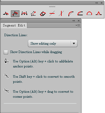 3、线段编辑工具(Segment Edit),选中路径,再点选本工具,可以进行以下几种操作: