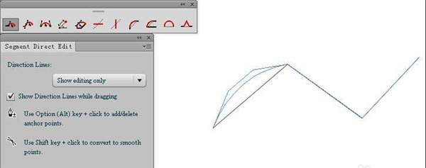2、路径直接编辑工具(Segment Direct Edit tool),选中路径,再点选本工具,可以进行以下几种操作: