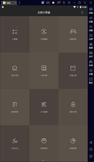 全能计算器电脑版是需要借助模拟器在电脑上运行的一款多功能计算器软件。软件集成了计算器、科学计算器、分数计算器等多种实用功能,以及汇率换算、亲戚计算器、房贷计算器等特色功能,更有日期计算器、进制转换、理财计算、单位换算等实用工具,满足用户各种计算和换算需求,轻松应对各种计算场景。