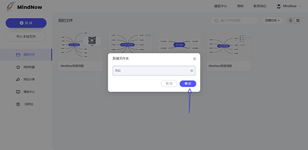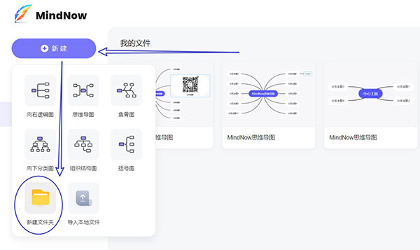 ①进入MindNow客户端,点击右上角的『进入我的文件』,在『我的文件』界面,选择『新建』-『新建文件夹』