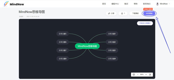 进入MindNow模板中心 (www.mindnow.cn /templates),选择自己需要的思维导图模板,然后进入模板详情页,点击右上角的『使用模板』按钮即可复用模板。