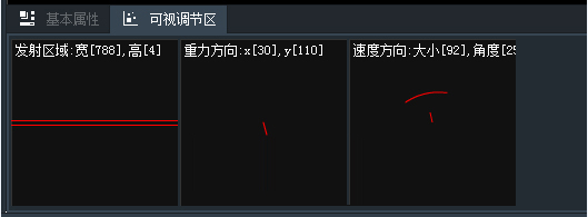 这里是有关粒子最基本的一些属性,比如 粒子生、发射的粒子数量、旋转角度等等。着重说明一下 “发射时长”这个参数,这个参数的值如果是正数的话,那么粒子发射器发射指定时长后将会停止发射,如果是负数的话(无论负值是多少),那么粒子发射器会一直发射。