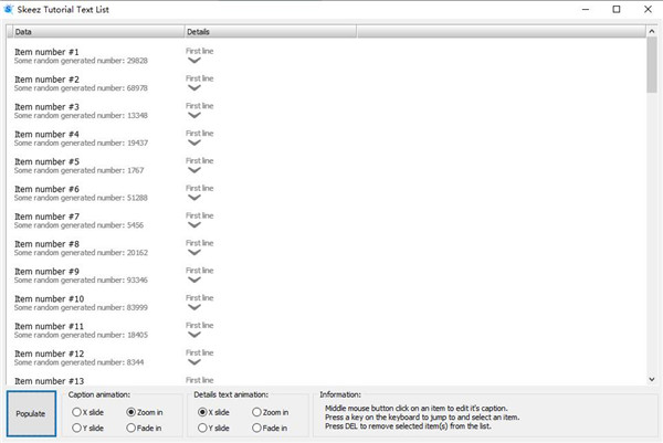 Skeez Tutorial官方版是一款非常好用的动画列表视图软件,软件可以在你的电脑上查看资源,提供多个工具,支持查看文本,查看图像,查看音频,启动工具就可以知道你当前可以管理的内容,对于需要修改文件查看方式的朋友很有帮助。Skeez Tutorial免费版支持多行文本,拥有可扩展的提示,高度,热轨道等等功能内置动画,可以对动画进行XY,缩放,渐变以及事件来进行自定义,支持各种格式图片以及音频文件查看;Skeez Tutorial免费版还支持虚拟对象的文件系统浏览器,图片列表查看器使用Free..dll加载多种格式的图片文件和音频文件列表查看器,支持所有当前的音频标记标准,并且在同一列表中支持可变项目高度的完全自定义显示,有兴趣的小伙伴快来下载体验吧!