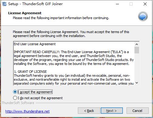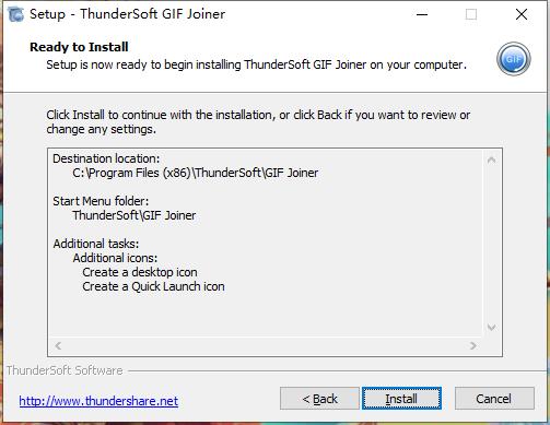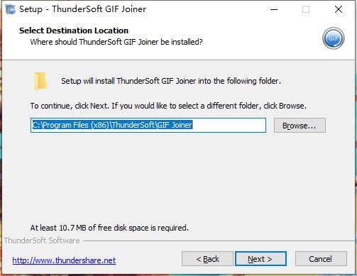 安装向导默认设置的软件默认安装路径为C:\Program Files (x86)\ThunderSoft\GIF Joiner