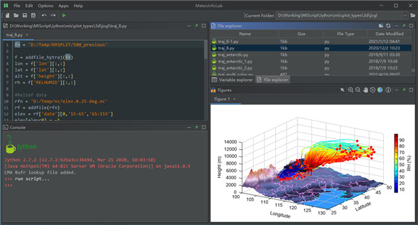 MeteoInfo是一款功能全面的气象数据显示、制图分析软件,气象数据是每时每刻都在改变的,所以这就导致其各项数据非常庞大。这就可以借助MeteoInfo来帮我们分析,MeteoInfo支持多种常用气象数据格式,具备一些基本的GIS功能。当然MeteoInfo还可以通过编写IronPython脚本程序自动运行,具备强大的数据分析功能,这时人工分析所不能及的!并且MeteoInfo还拥有气象制作功能,支持常用图像数据,BMP、GIF、JPG、TIF,能够对图像进行地理位置配准,对复杂网格等值线追踪和填色接近完美。不管是利用MeteoInfo来分析气象数据还是用来制作气象图,其各项强大的功能都可以满足你!