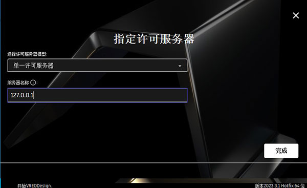 7、选择“单一许可服务器”,填如127.0.0.1即可完成