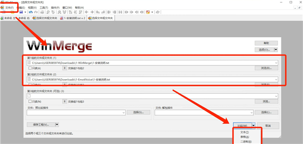 1、拖入文件 打开软件后,直接将需要对比的文件或文件夹拖入左右窗口(支持三组同时比较)。